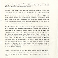 - Message to be read out on behalf of the VC at a party being held to honour Guy Butler at Rhodes University during the AUTESA Conference