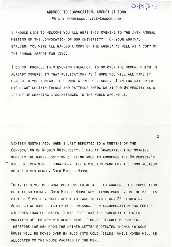 Henderson, Derek Scott, “Address to Convocation, 1984”, Rhodes University History Archive, accessed 30 December 2025, https://digitalarchives.ru.ac.za/s/ruha/item/15493
