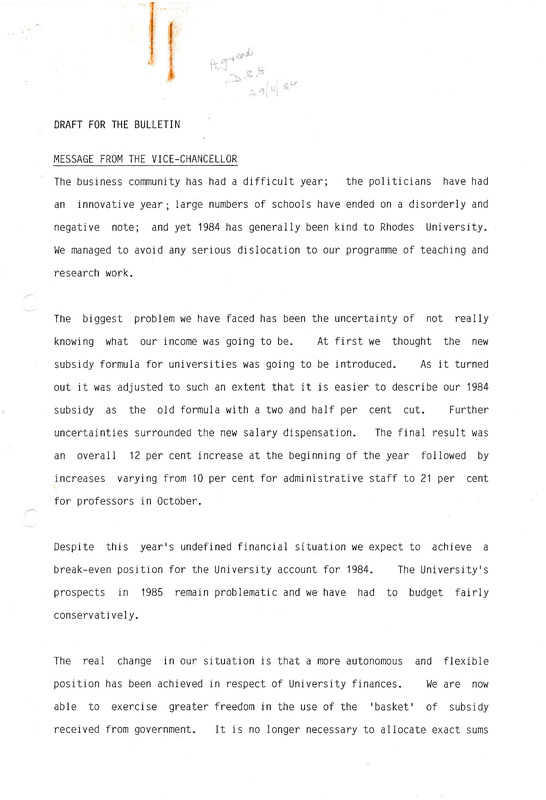 Henderson, Derek Scott, “Message from the Vice-Chancellor”, Rhodes University History Archive, accessed 30 December 2025, https://digitalarchives.ru.ac.za/s/ruha/item/15507