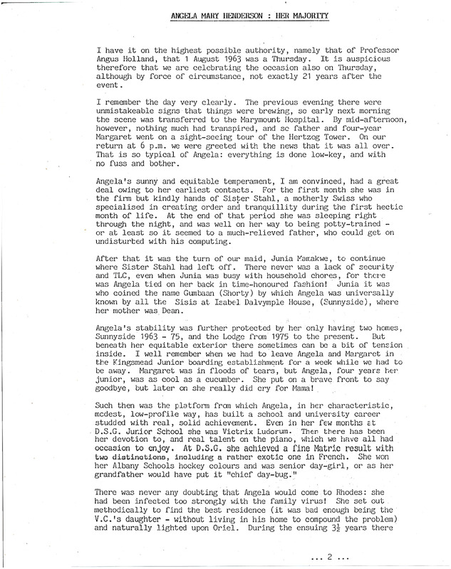 Henderson, Derek Scott, “Angela Mary Henderson: her majority”, Rhodes University History Archive, accessed 30 December 2025, https://digitalarchives.ru.ac.za/s/ruha/item/15513