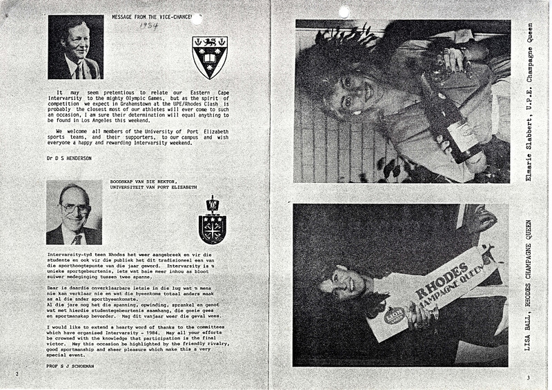 - Intervarsity message from the Vice-Chancellor of Rhodes University 1984