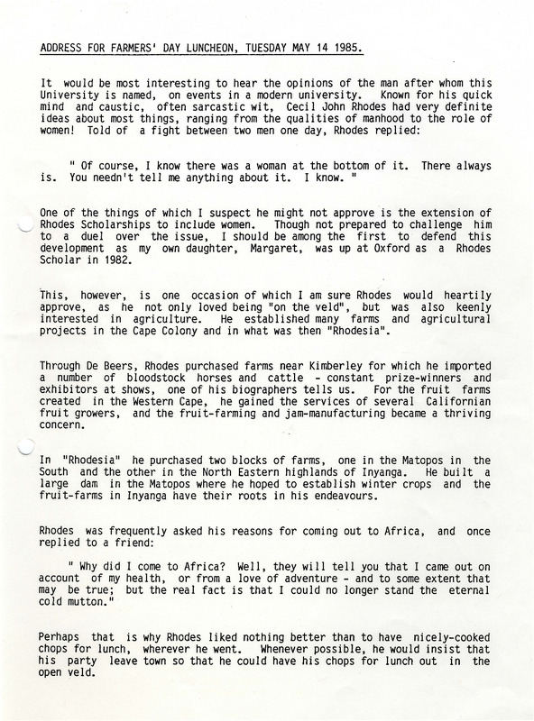 Henderson, Derek Scott, “Address for farmer's day luncheon”, Rhodes University History Archive, accessed 30 December 2025, https://digitalarchives.ru.ac.za/s/ruha/item/15541