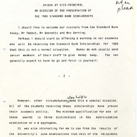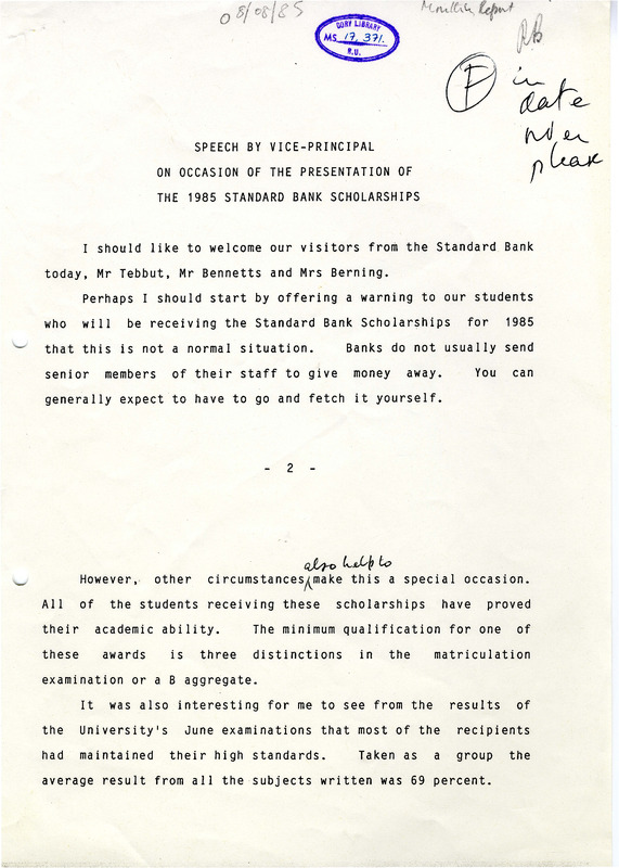 - Speech by vice-principal on occasion of the presentation of the 1985 Standard Bank scholarships