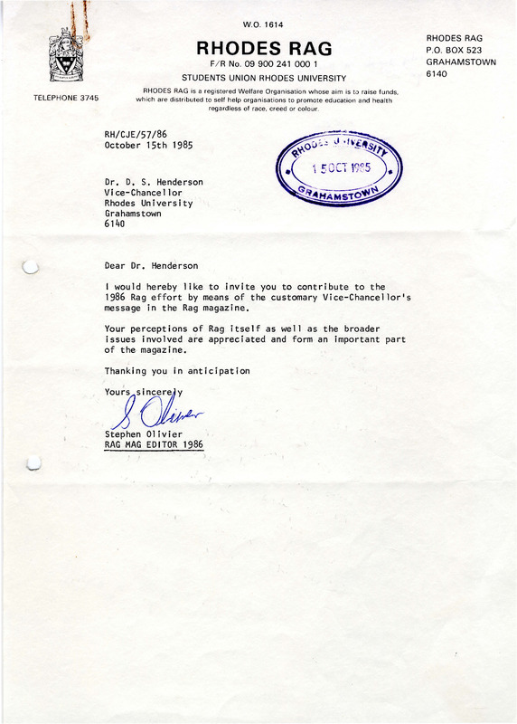 Henderson, Derek Scott, “Rag message 1985”, Rhodes University History Archive, accessed 30 December 2025, https://digitalarchives.ru.ac.za/s/ruha/item/15567