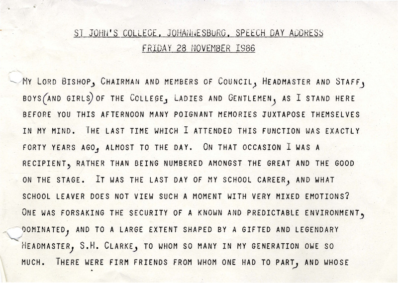 Henderson, Derek Scott, “St John's College, Johannesburg, speech day address”, Rhodes University History Archive, accessed 30 December 2025, https://digitalarchives.ru.ac.za/s/ruha/item/15657