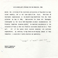 - Vice-Chancellor's message for rag magazine, 1986
