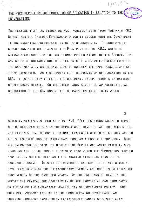 Henderson, Derek Scott, “The H.S.R.C. Report on the provision of education in relation to the universities”, Rhodes University History Archive, accessed 30 December 2025, https://digitalarchives.ru.ac.za/s/ruha/item/15693