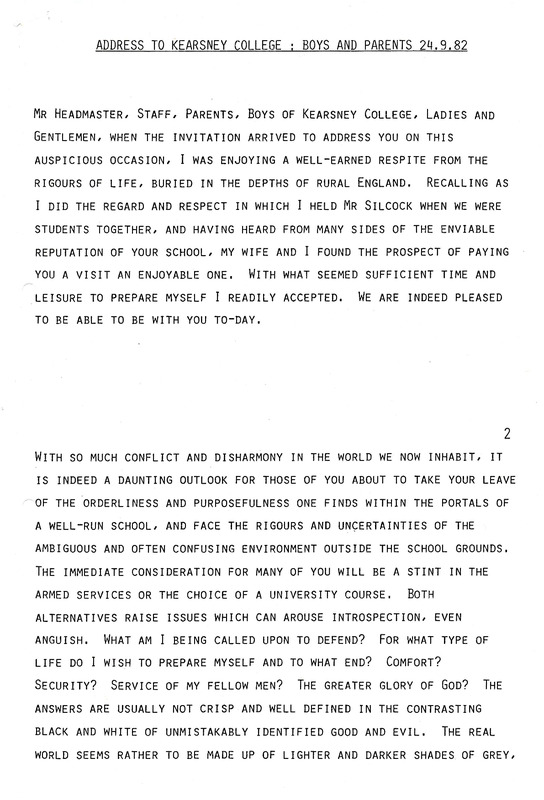 - Address to Kearsney College boys and parents