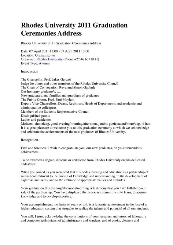 - Badat, S. (2011) Rhodes University 2011 Graduation Ceremonies Address. 7 April 2011, Grahamstown. (Unpublished)
