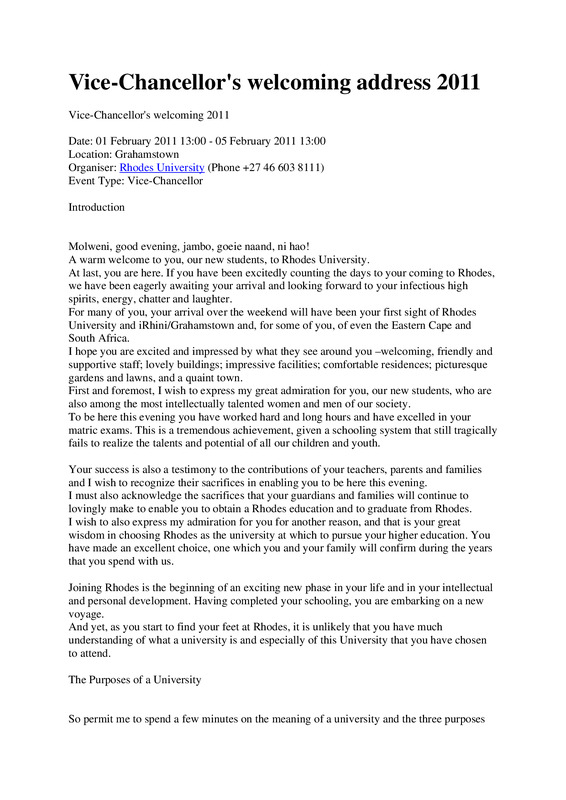 - Vice-Chancellor's welcoming address 2011