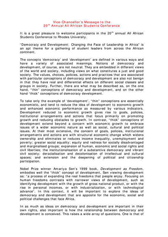 - Vice-Chancellor's Message to the 20th Annual All African Students Conference