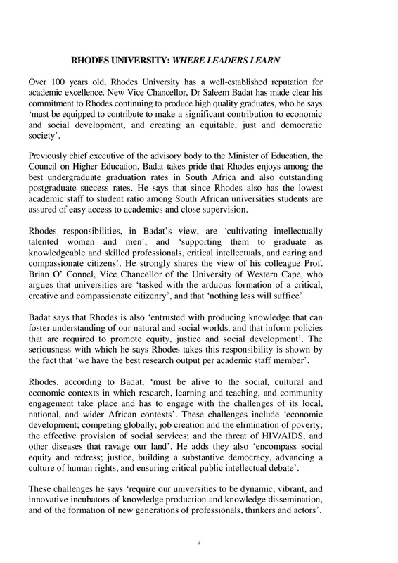 Badat, Saleem, “Rhodes University: where leaders learn”, Rhodes University History Archive, accessed 30 December 2025, https://digitalarchives.ru.ac.za/s/ruha/item/15771