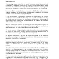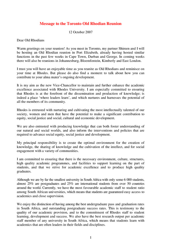 - Vice Chancellor's message to the Toronto Old Rhodian Reunion