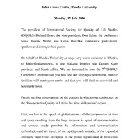 - ISQOLS Conference (International Society for Quality-of-Life Studies), Grahamstown, South Africa, 17-20 July 2006.