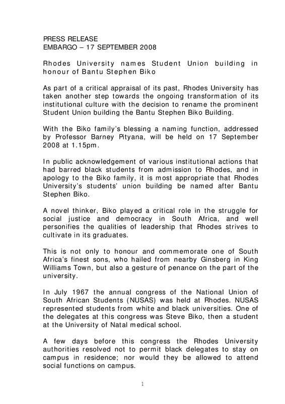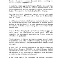 - Press release: Rhodes University names Student Union building in honour of Bantu Stephen Biko