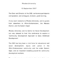 - Welcome address at the Centre of Social Development Early Childhood Development Conference, Grahamstown, 2007