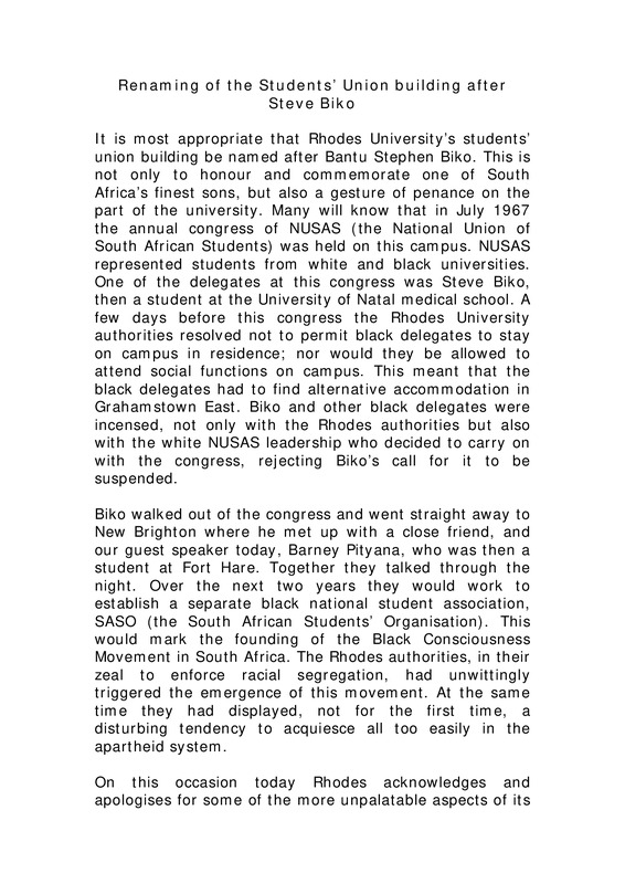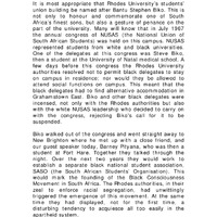 Badat, Saleem, “Renaming of the Students Union building after Steve Biko”, Rhodes University History Archive, accessed 31 December 2025, https://digitalarchives.ru.ac.za/s/ruha/item/15881