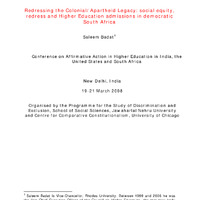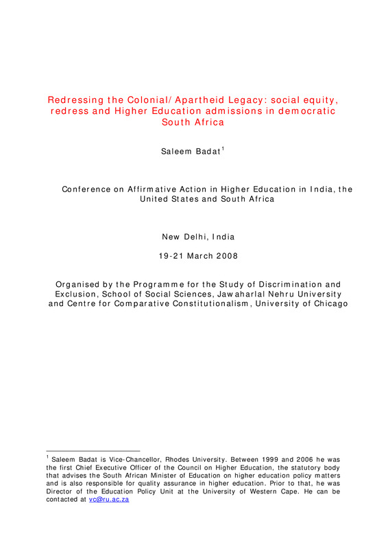 - Redressing the Colonial/Apartheid Legacy: social equity, redress and Higher Education admissions in democratic South Africa