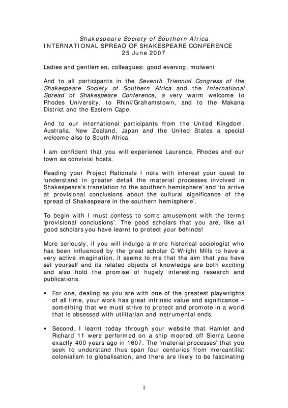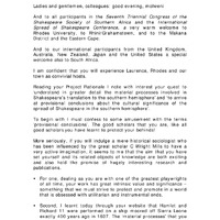 - Seventh Triennial Congress of the Shakespeare Society of Southern Africa