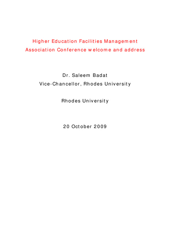 Badat, Saleem, “Higher Education Facilities Management Association Conference welcome and address”, Rhodes University History Archive, accessed 31 December 2025, https://digitalarchives.ru.ac.za/s/ruha/item/16017