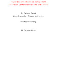 - Higher Education Facilities Management Association(HEFNA) Conference, Grahamstown, October 2009