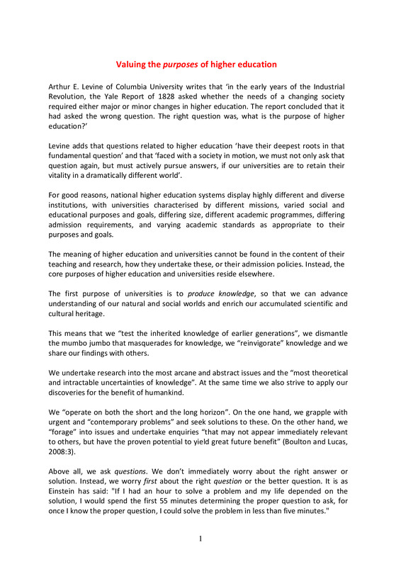 - Valuing the purposes of higher education