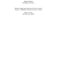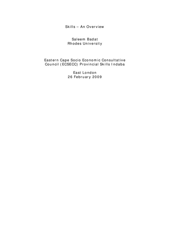 - Eastern Cape Socio Economic Consultative Council (ECSECC) Provincial Skills Indaba, East London, 26 February 2009