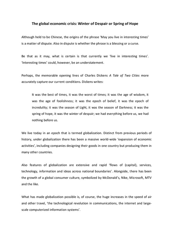 - The global economic crisis: Winter of Despair or Spring of Hope