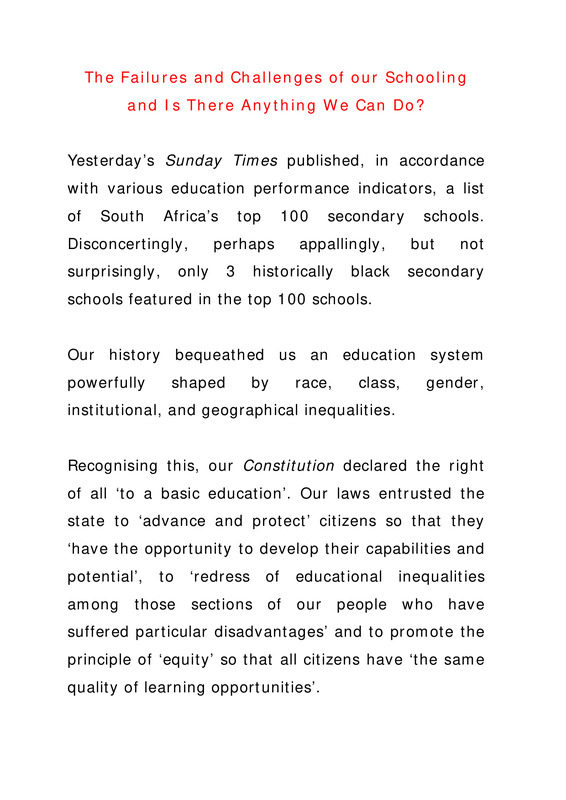 Badat, Saleem, “The failures and challenges of our schooling and is there anything we can do?”, Rhodes University History Archive, accessed 31 December 2025, https://digitalarchives.ru.ac.za/s/ruha/item/16059