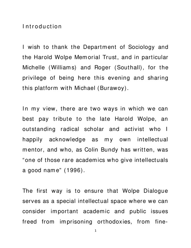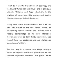 - Wolpe Dialogue : Universities in Crisis: Transformation in Higher Education, Department of Sociology, Wits University and the Harold Wolpe Memorial Trust