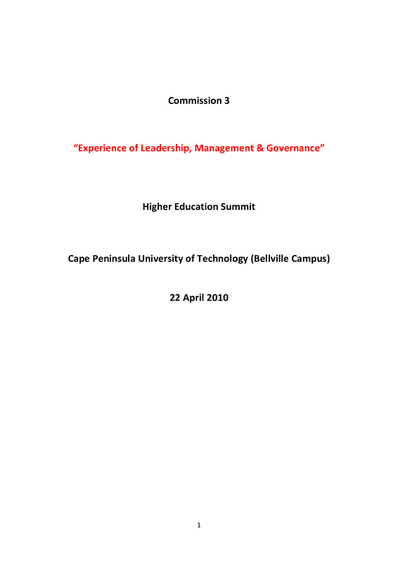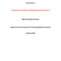 - Higher Education Summit, Cape Peninsula University of Technology, 10 April 2010