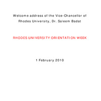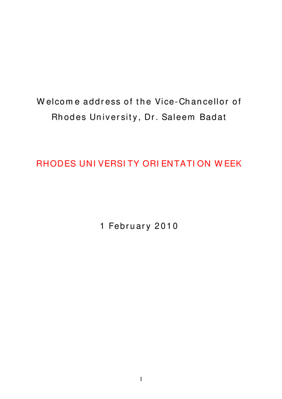 - Welcome address of the Vice-Chancellor of Rhodes University, Dr. Saleem Badat