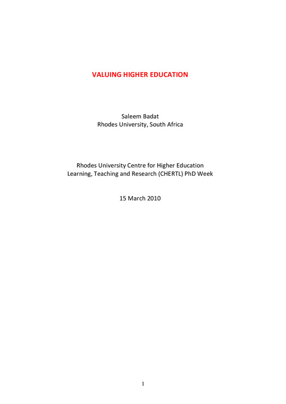 - Rhodes University Centre for Higher Education Learning, Teaching and Research (CHERTL) PhD Week 2010