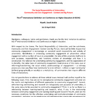- The 4th International Exhibition and Conference on Higher Education (4-IECHE), Riyadh, Saudi Arabia, 16-19 April 2013