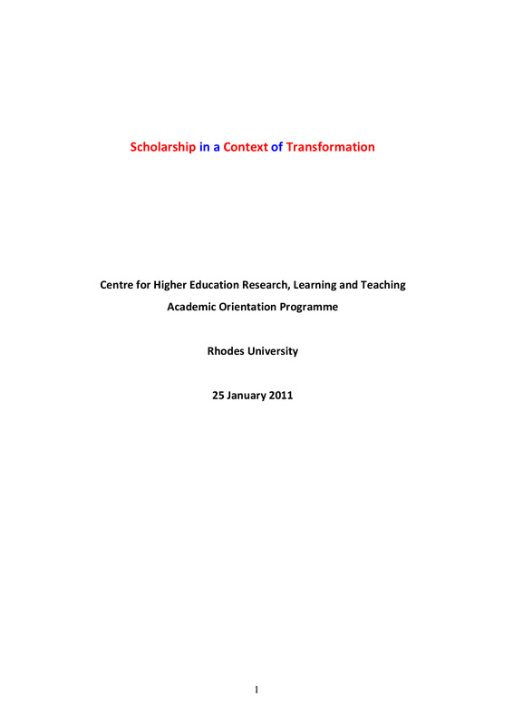 - Scholarship in a context of transformation