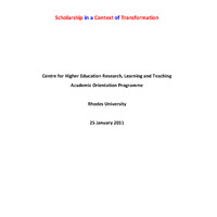 - Centre for Higher Education Research, Learning and Teaching Academic Orientation Programme, Rhodes University, 25 January 2011