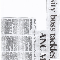 Maqhina, Mayibongwe, “Varsity boss tackles ANC MP: Rhodes VC angered by ""dangerous"" remark from Bisho”, Rhodes University History Archive, accessed 30 December 2025, https://digitalarchives.ru.ac.za/s/ruha/item/16205