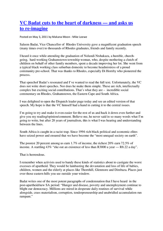 Loewe, Mike, “VC Badat cuts to the heart of darkness - and asks us to re-imagine”, Rhodes University History Archive, accessed 30 December 2025, https://digitalarchives.ru.ac.za/s/ruha/item/16215