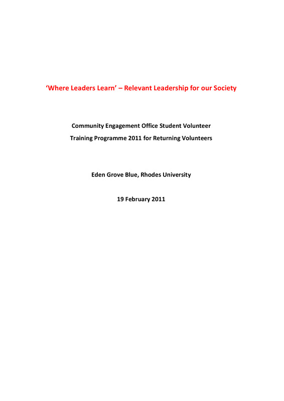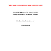 - Community Engagement Office Student Volunteer, Training Programme 2011 for Returning Volunteers, Eden Grove, Rhodes University, 19 February 2011