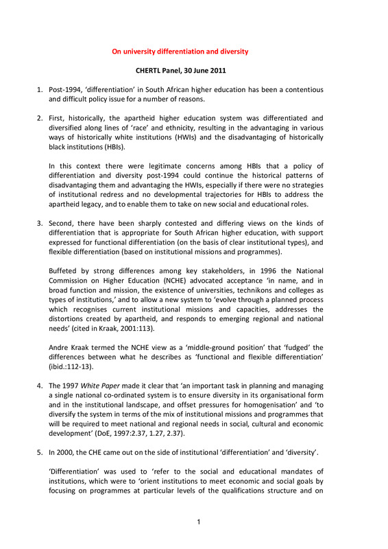 - On university differentiation and diversity
