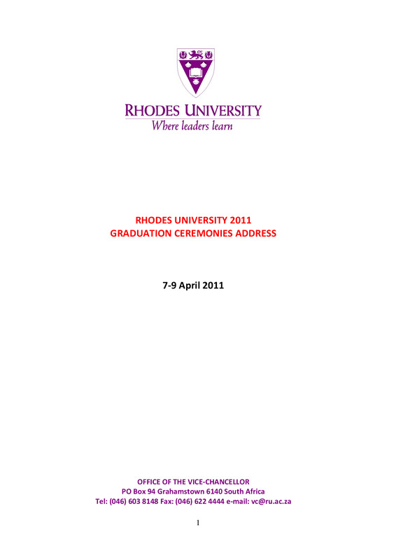 - Rhodes University graduation ceremonies address - 7-9 April 2011