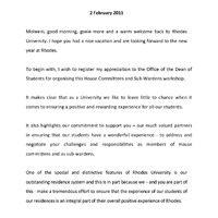 - VC's welcome at the Rhodes University House Committees and Sub-Wardens workshop
