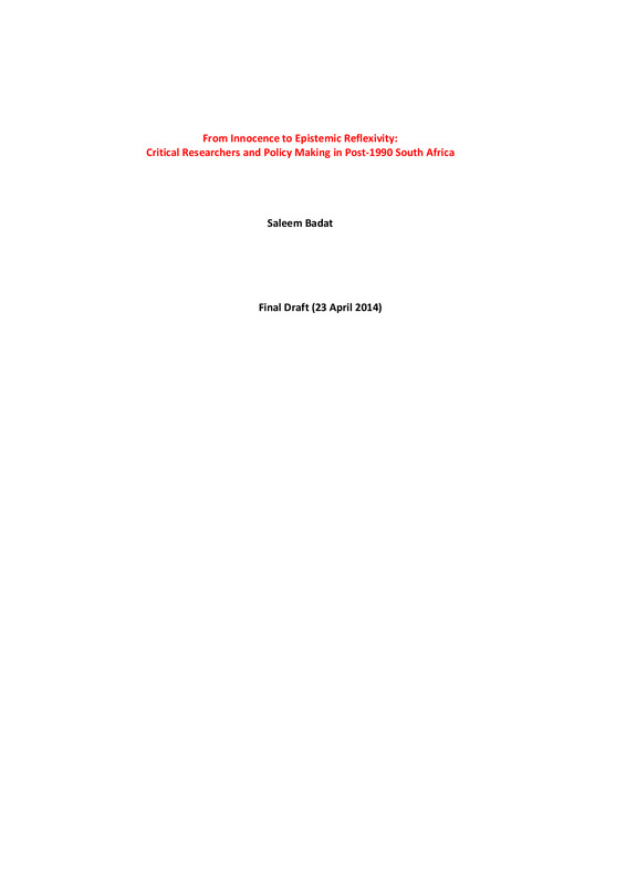 - From innocence to epistemic reflexivity: Critical researchers and policy making in post-1990 South Africa