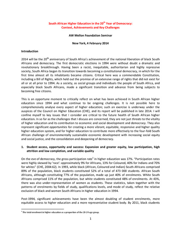 - South African higher education in the 20th year of democracy: context, achievements and key challenges