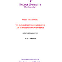 Badat, Saleem, “Vice-Chancellor's graduation ceremonies and chancellor's installation address”, Rhodes University History Archive, accessed 30 December 2025, https://digitalarchives.ru.ac.za/s/ruha/item/16363
