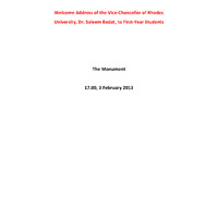 - Welcome address of the Vice-Chancellor of Rhodes University, Dr. Saleem Badat, to first-year students