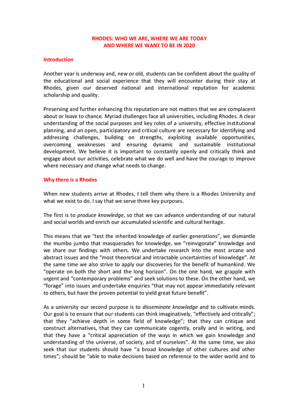 Badat, Saleem, “Rhodes: who we are, where we are today and where we want to be in 2020”, Rhodes University History Archive, accessed 30 December 2025, https://digitalarchives.ru.ac.za/s/ruha/item/16405