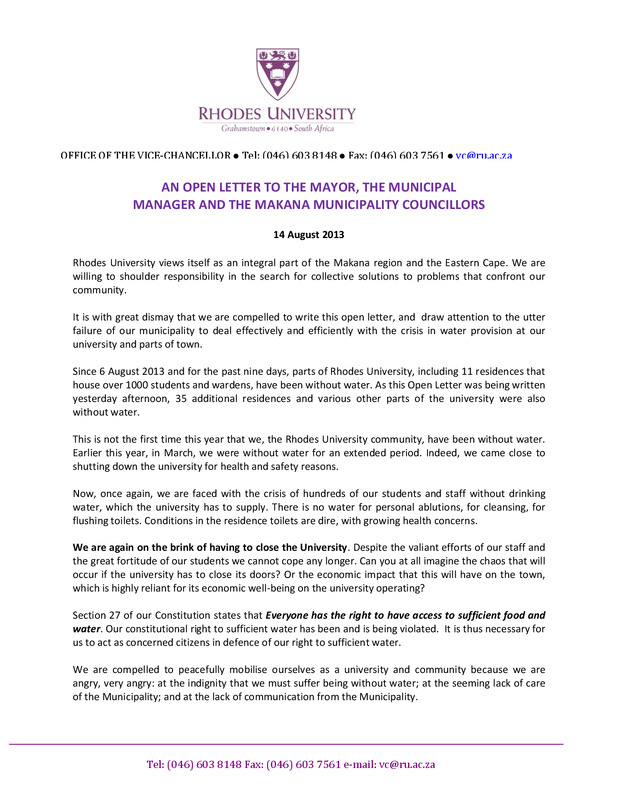 - An open letter to the mayor, the municipal manager and the Makana Municipality councilors