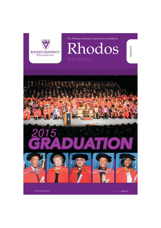 - The Rhodos newsletter carries news and information about events, awards, projects and developments both on and off campus. Ten editions of Rhodos are printed throughout the academic year for distribution among staff members of the University