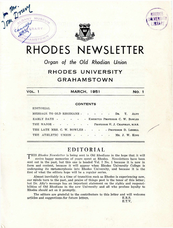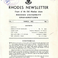 Rhodes University, Grahamstown, South Africa, “Rhodes Newsletter: Vol. 1, No. 1”, Rhodes University History Archive, accessed 29 December 2025, https://digitalarchives.ru.ac.za/s/ruha/item/7316